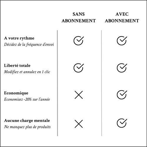 Oui, c'est l'un des avantages de notre formule ! Vous pouvez simplement ajouter des produits à votre prochaine livraison sans vous abonner. Offrez des cadeaux ou faites-vous plaisir en ajoutant un produit spécifique ponctuellement à votre abonnement. Modifiez votre livraison et ajoutez le produit souhaité dans la rubrique dédiée, sans engagement.